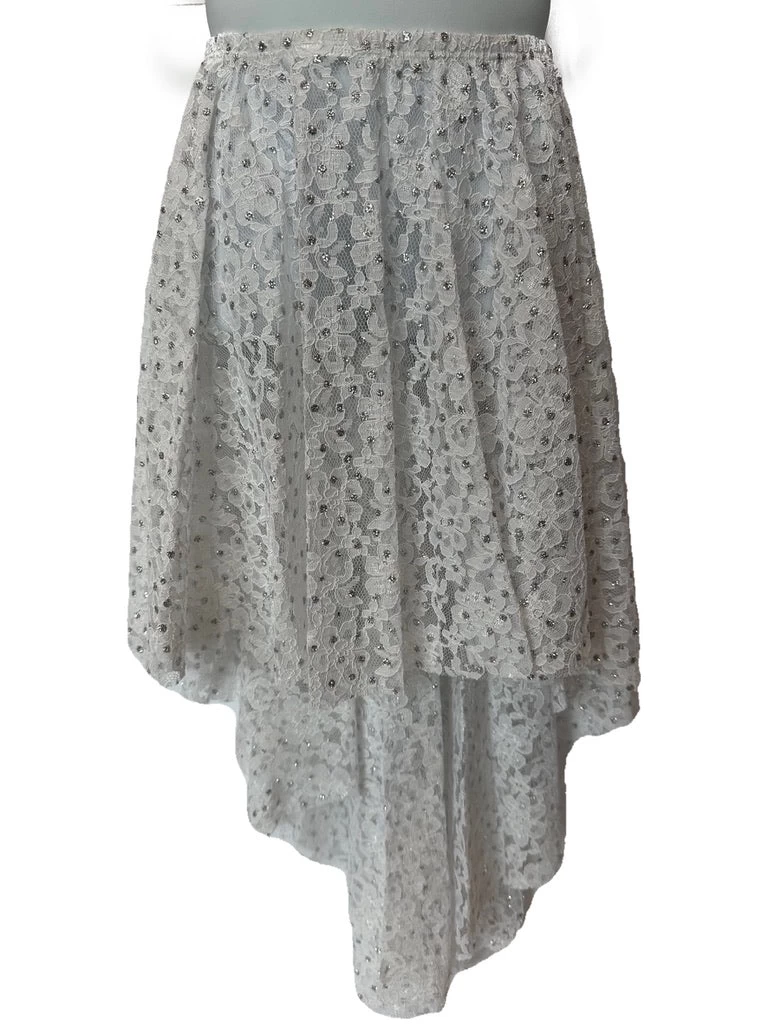 This style is great for all types of costuming and performance purposes. Showing off lines while staying stylish and eye catching is accomplished easily in this versatile and attractive lace skirt.  Does not include White Leotard or Long White skirt underneath, only includes the lace overlay (pictured in green).Â