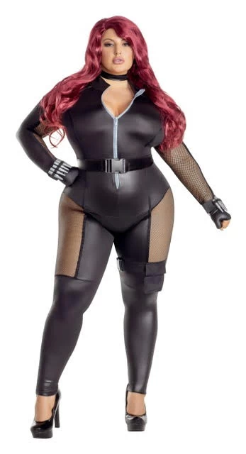 You will be ready to take on anyone in the avenging assassin costume. The zip front wet look catsuit has sewn in mesh inserts on the arms and legs with leg straps, a belt, and other great accessories. 100% Polyester