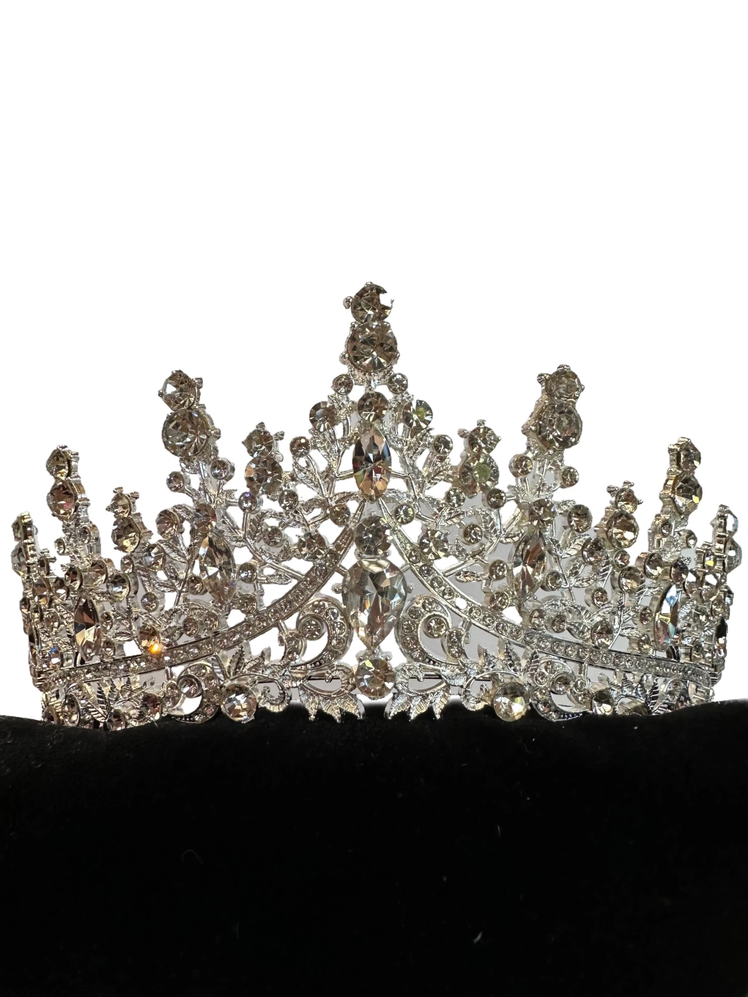 The Baroque Style Rhinestone Tiara is a beautiful accessory for any royal occasion with elegant and complex scroll detail. The crown includes two combs for a more secure fit. The height is just over 2″ with about 6″ of scrolling detail across the width of the crown.
