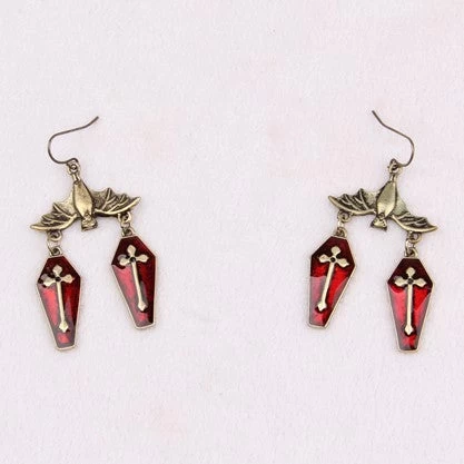 For pierced ears. Perfect for vampires of all ages. Check out the matching casket ring!
