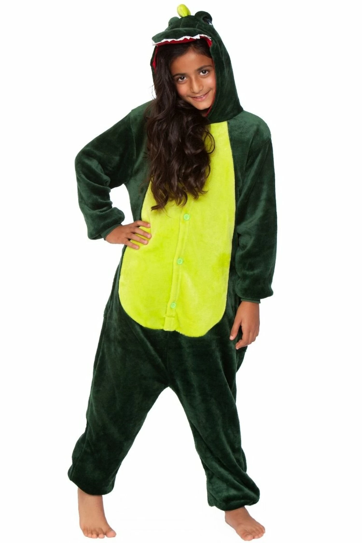 Cozy and Adorable, the dinosaur onesie is the perfect choice for those cold Halloween Nights. The one piece dinosaur costume includes the hooded jumpsuit only.