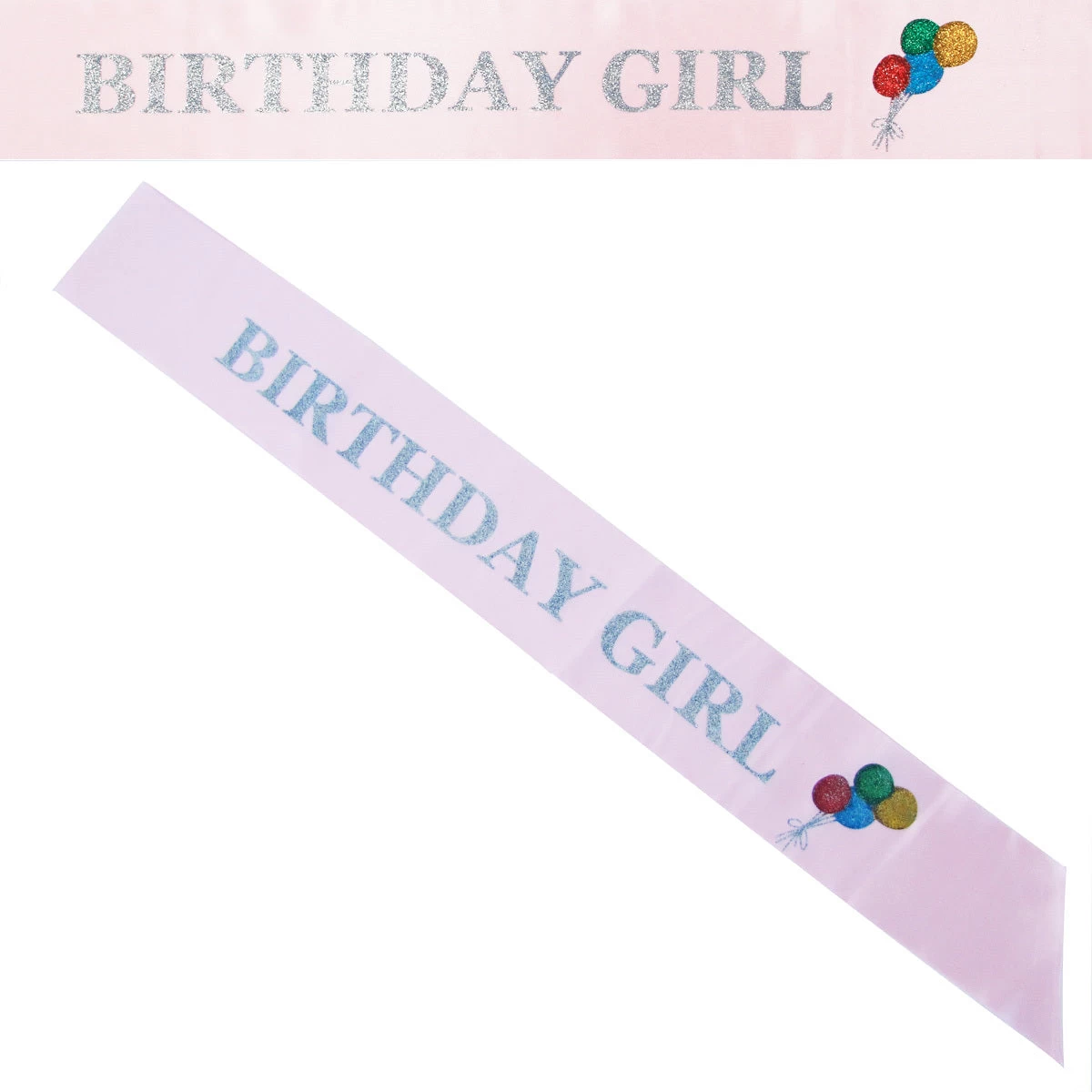 Celebrate her special day with this festive Birthday Girl Sash! The light pink sash has “Birthday Girl” in silver glitter with multi color balloons. She will love this birthday keepsake!