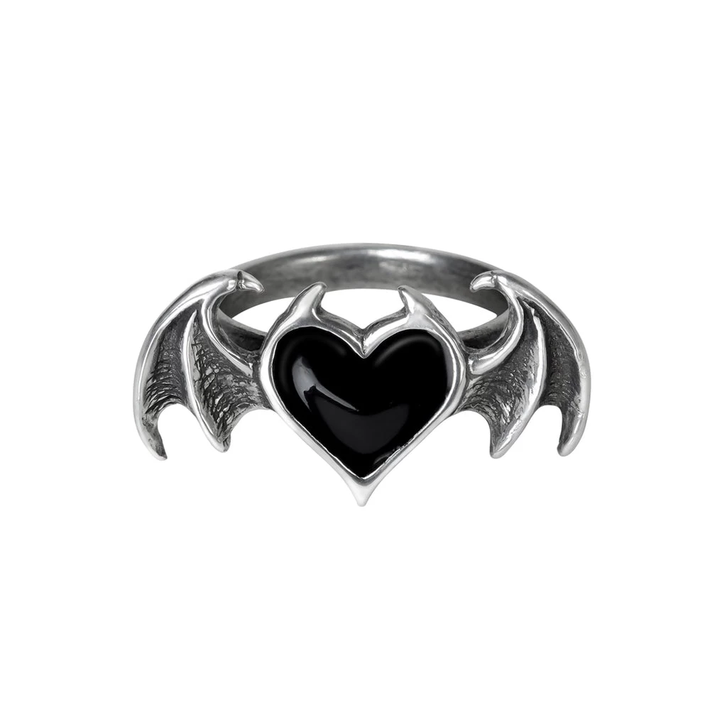 This gorgeous ring has a black demon heart of a gothic seductress, nocturnally enticing her prey with ravishing enchantment. Made in England