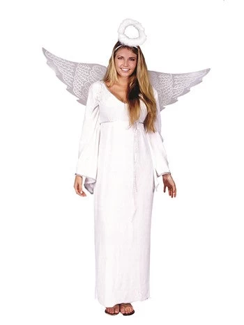 The Classic Angel is a great basic white dress that can be used as an angel or many other costumes. The lightweight dress has silver trim edges along the full sleeves, neckline and tie belt. Also includes a tinsel halo. The wand and wings are available separately. Available in one size (up to a size 8).