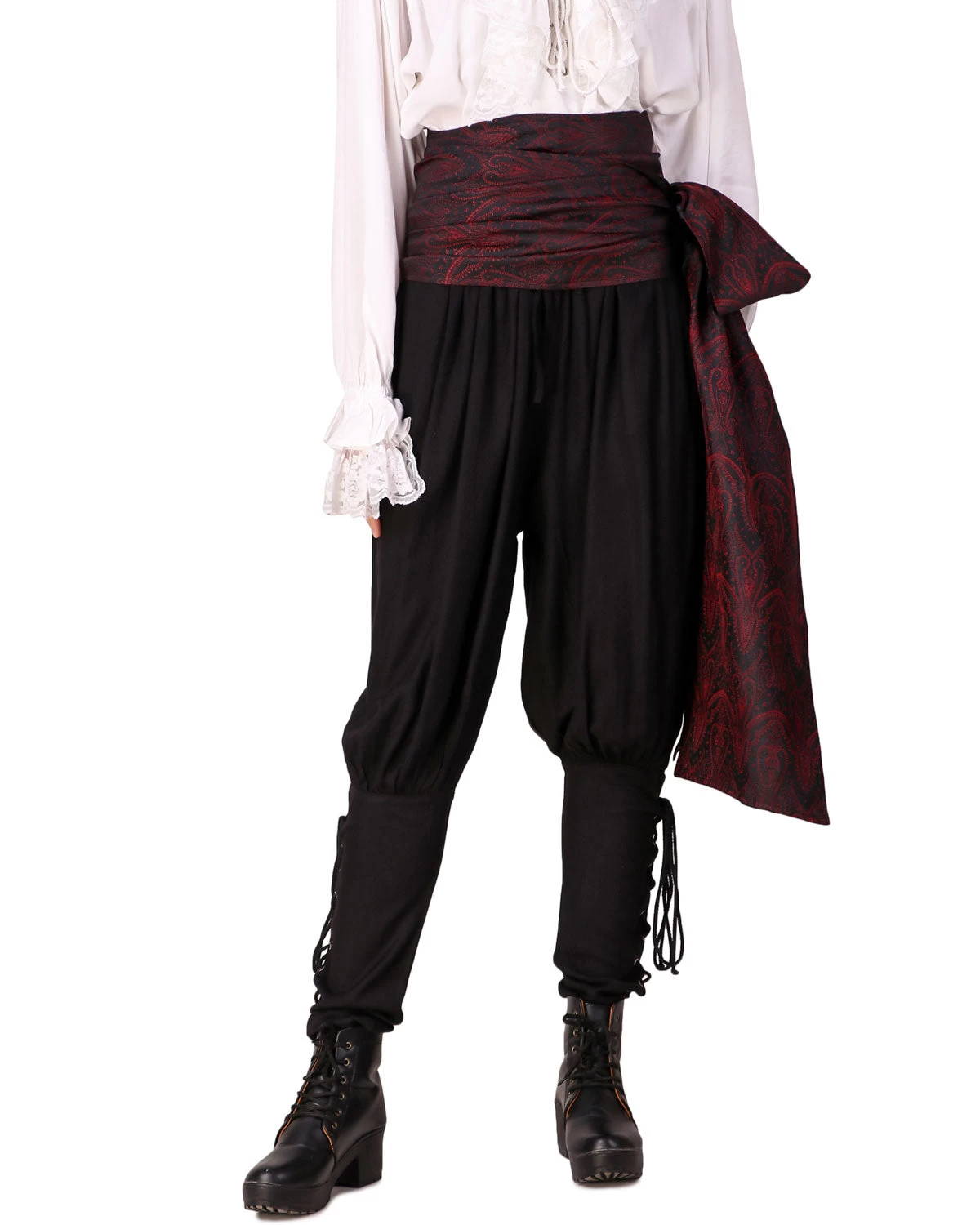 Flexible and multi-purpose, this is the ideal accessory to polish off any pirate outfit. It is made from brocade fabric with satin lining, making it light and easy to wear. At the length of 144 inches, and a width of 10 inches, it is long enough to wrap around twice if you want to wear on the waist. Available in red/black and gray paisley.