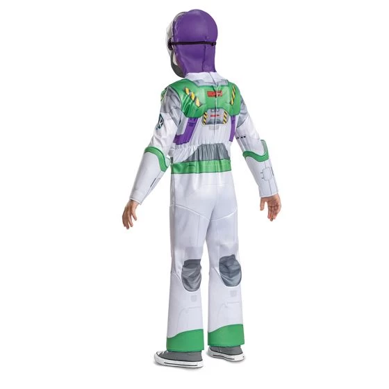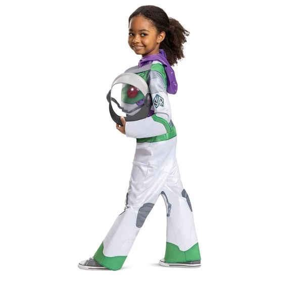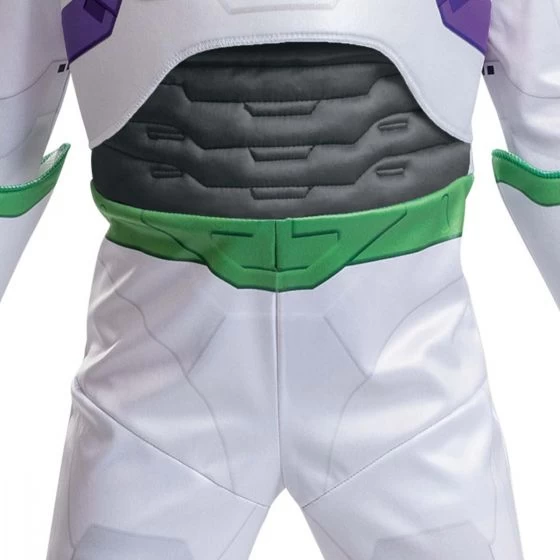 Become a fearless space hero like Buzz in this Lightyear Space Ranger costume! This jumpsuit features Space Ranger suit artwork, a built out chest overlay, a hood, and half mask helmet. Don’t forget to write in your own name on the blank yellow nametag on the left bodice to become an official Space Ranger!