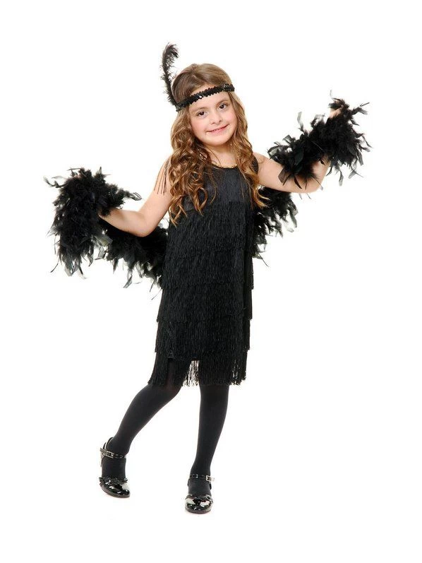 Shimmy with this adorable fringe flapper dress. The vibrant purple fringe and gold trim collar stands out and looks great. The dress is fringed on front and back! Perfect style for dress up, parties, or trick-or-treating. Just add some long gloves, pearls and a boa and you are set! Please note, this dress is available in purple fringe only.