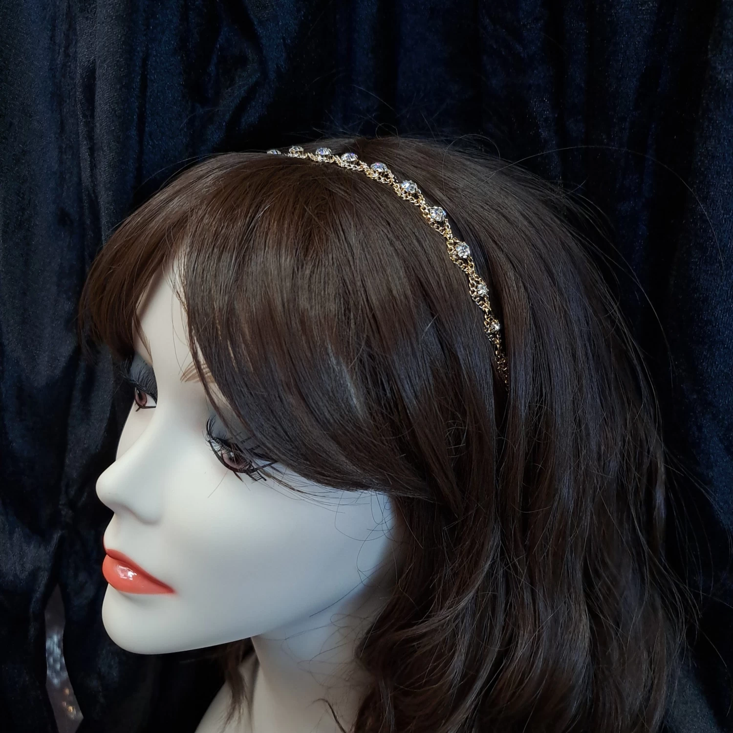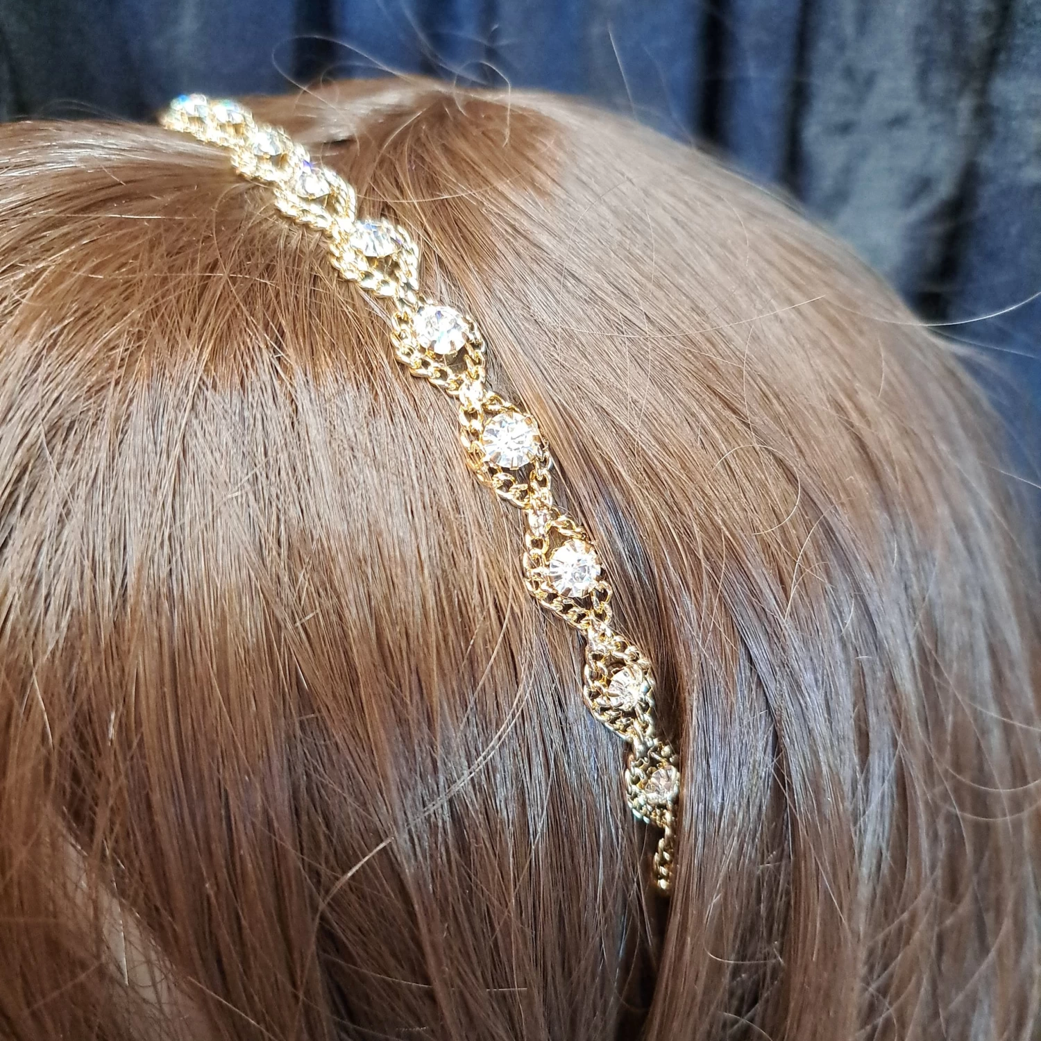 Our beautiful gold headband with rhinestones has an elastic band on the back. A great focal feature for Goddesses, Cleopatra and even 1920’s Flappers!