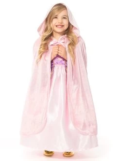The right cloak can help make any dress up more dazzling! This hooded cloak is made with soft crushed pink velvet, a coordinating hook and loop satin bow closure, and finished off with a smooth bound edge. You will love the comfortable design without any itchy seams and the durable design of this adorable dress up costume piece.