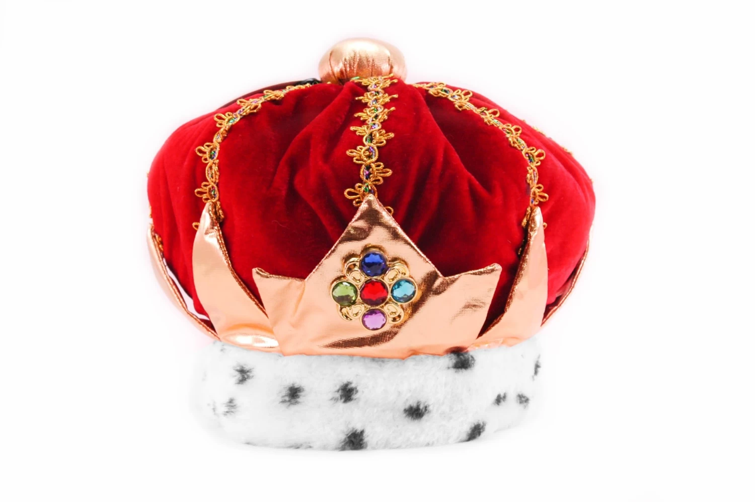 It is better to be feared than loved, if you cannot be both. Whether you rule with an iron fist or a velvet glove, all will bow before you in the King Red crown by elope! Adorned with luscious faux gemstones, a red velvet fabric, and trimmed with a faux fur lining, your subjects will swoon at such an extravagant display of wealth. A secret pocket hidden in the crown serves to hide gold and jewelry, and the included Velcro size adjuster will ensure this cap snugly fits any member of the ruling class.