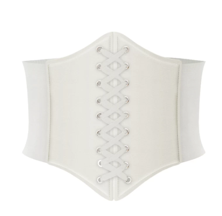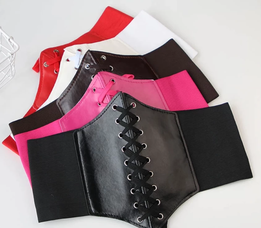 The wide waisted belt is the perfect final touch to accent your waist. The pleather cincher has a lace-up style front and pleather framing it with the wide elastic that continues to the back and has a velcro closure.