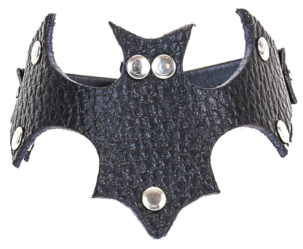 This black leather bracelet is shaped like a bat with studs on the edges. Great for Halloween, punk, rockers, gothic, witches, vampires, grunge and so many more!