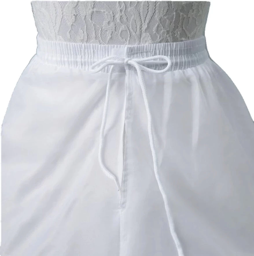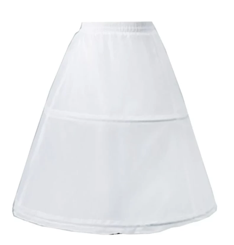 The full length hoop slip fits around the waist with a string tie. The tiers have two plastic hoops to create fullness under a dress. Length is 20.5″ and is perfect for princess costumes, flower girl dresses or pageant dresses.