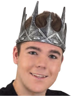 The medieval crown is made of silver colored foam rubber with spikes around the top and a black, adjustable, velcro band across the back. One size fits most adults. Adjustable from 21 to 23 inches circumference, approximately 5 3/4 inches at the tallest point.