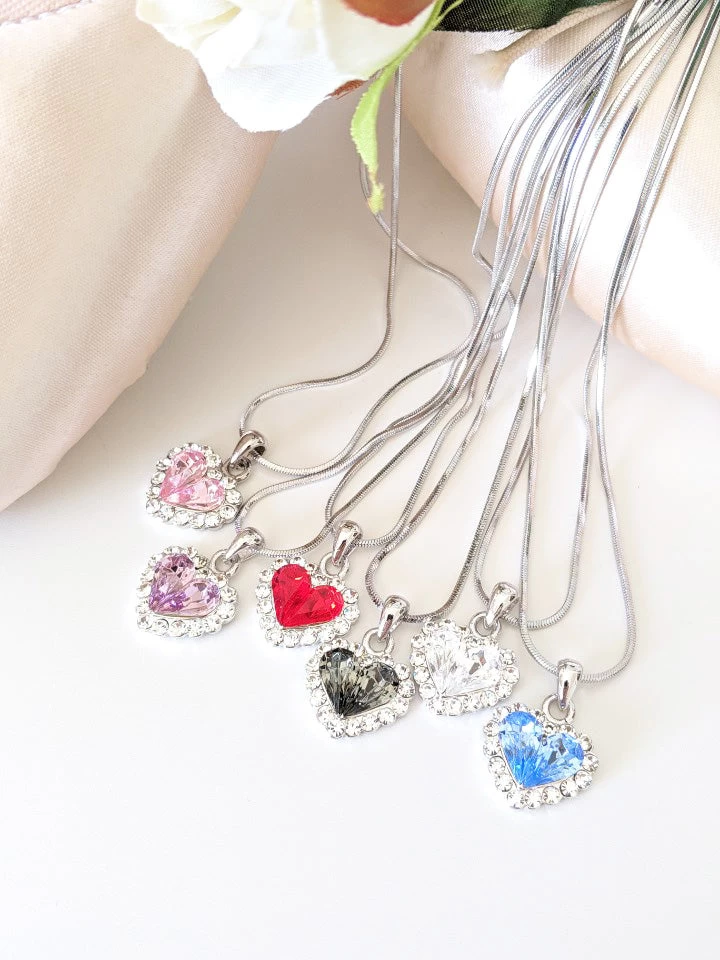 Precious heart necklace will show your dancer how much you love them. The larger center colored stone is adorned by smaller clear stones. This makes a great gift all year round.