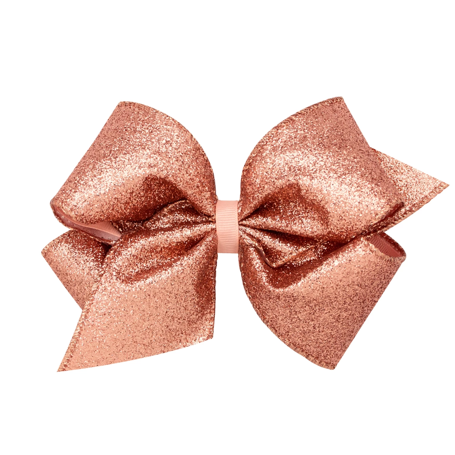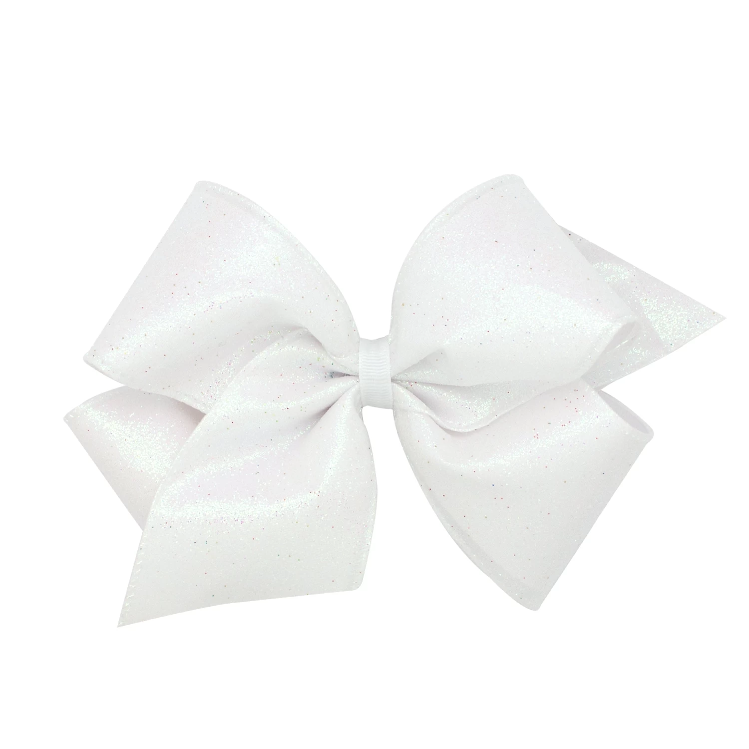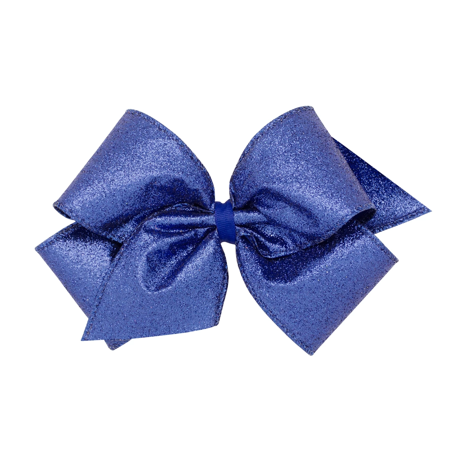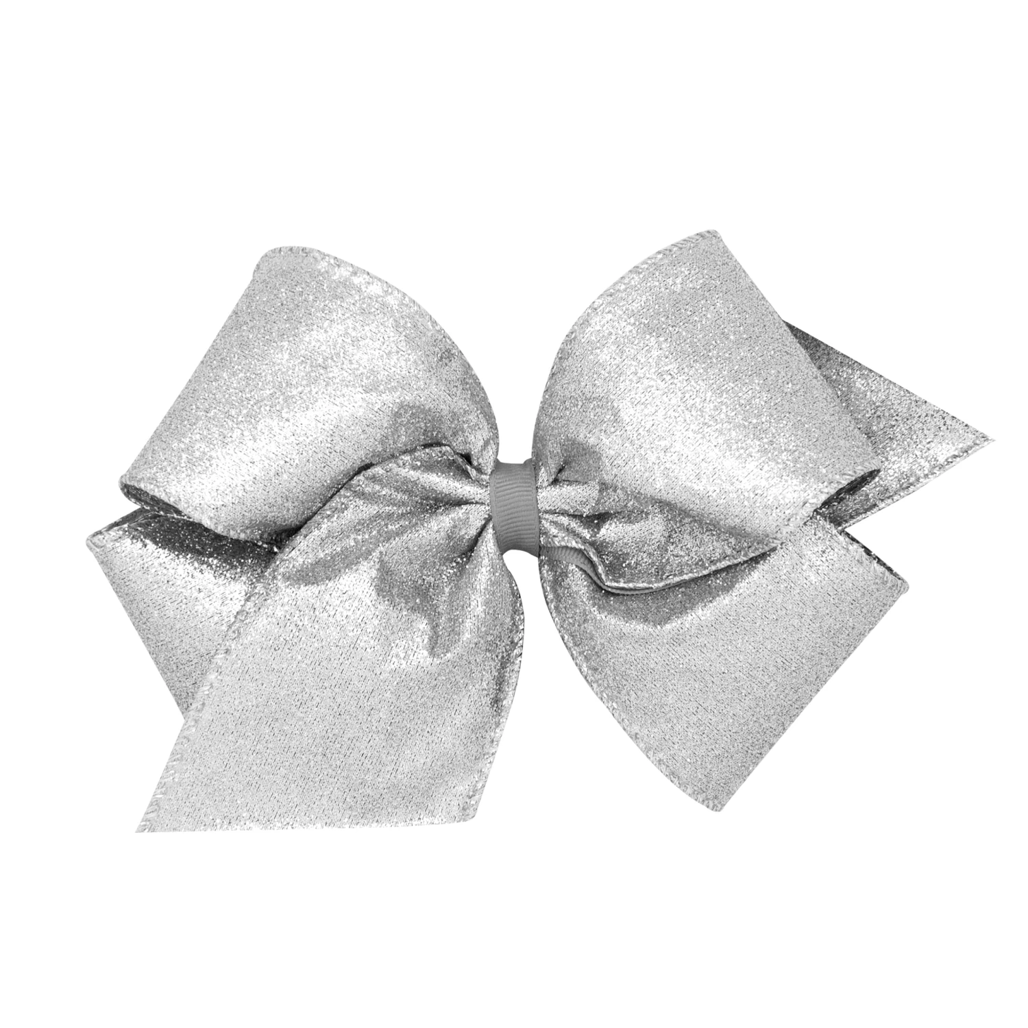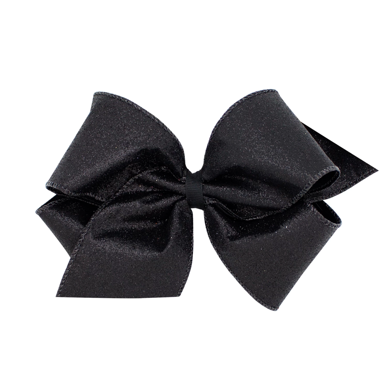 The ultimate in glitter and size, the X-Large bow has a glitter print lame’ stretch ribbon and grosgrain overlay to stand out in the crowd. So many colors to coordinate with every outfit or party dress! We really love the Wee Ones bows because of the great craftsmanship. All bows have a patented no slip clip so the bows stay securely in place without tugging on the hair. Approximate size: 6.25″ x 5″ (2.25″ ribbon). Also available in medium.