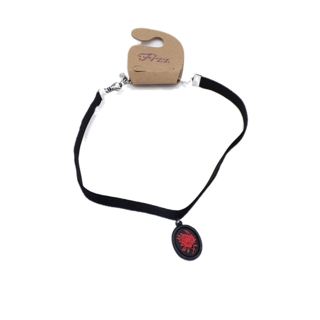 The elegant black velvet ribbon choker has antiqued raised red rose cameo with a black background and black frame. Adjustable back lobster clasp. The velvet ribbon is 3/8″ wide by 12″ long and the cameo is 1 1/8″ long and 15/16″ wide. Perfect for Dia De Los Muertos, Gothic, Vampires, Witches and anything Halloween. Look for coordinating rings and earrings. Made in the USA.