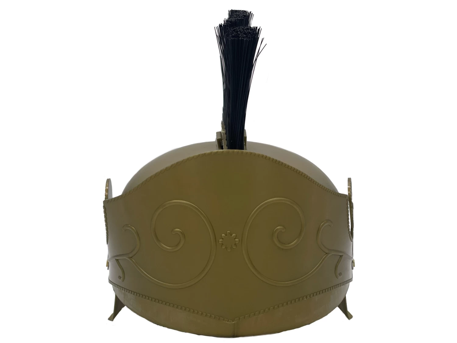 The golden spartan helmet comes with a plastic sliding face cover and a red or black brush top. You will look and feel so strong and powerful by adding this accessory to your gladiator costume!