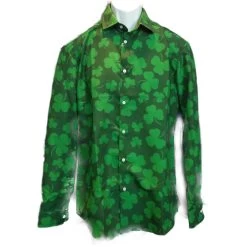 The St. Pat’s Dress Shirt has Kelly green shamrocks against a dark green background with white buttons. Great for St. Patrick’s Day events or just for fun!