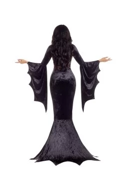 This bewitching cape will have you ready to glide through the graveyard. This cape is perfect on its own or accessorized with any of our many costumes for a more memorable and unique look, ideal for stage performances, costume parties, Halloween, cosplay, and more! Full length black velvet hooded cape with vivid purple, red, or black satin lining. One Size fits most adults.