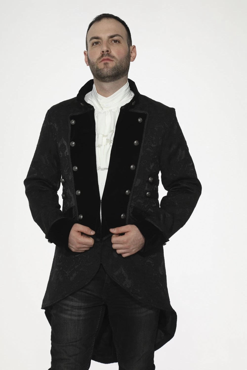 The Black Brocade Venetian Coat works perfectly for a variety of cosplay characters or Halloween costumes for any gender! The frock coat has a medium-high neck and silver buttons. It drapes to about mid-thigh for adults and has a lace up tie in the back for a more accurate fit. Just dress it up with the right accessories to create a pirate captain, Count Dracula, colonial lord, plague doctor, and even for a Victorian or Steampunk outfit. Vampire teeth, jewelry, hats, and other accessories available separately.